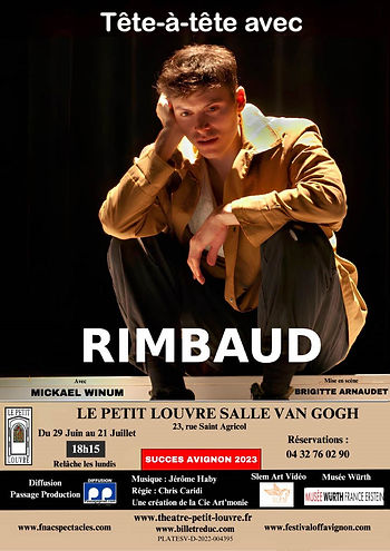 Un beau succès obtenu auprès du public et de la presse qui a classé cette pièce parmi les dix spectacles à découvrir- articles parus dans La Provence, dans A voir /Lire-. Ce seul en scène revient cet été au Petit Louvre pour le Off d’Avignon toujours porté par un Mickaël Winum campant un jeune Rimbaud plus vrai que nature. La troupe est par ailleurs composée de l’acteur et coauteur, avec sa complice co-auteure et metteuse en scène Brigitte Arnaudet, ainsi que de Jérôme Haby pour la musique et de Cris Caridi à la grille lumière et enfin les extraits vidéos ont été assurés par Slem Art vidéo.