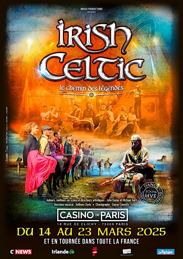 Bravo à toute l’équipe artistique , aux auteurs, metteurs en scènes et directeurs artistiques, Julie Dayan et Mickael Xerri, tombés amoureux de l’Irlande et de ses chaleureux habitants qui ont su transcender leurs maux par leur danses et chants extraordinairement préservés. Bravo aussi à leur directeur musical Antony Davis dont la famille est originaire de Galway et qui a grandi avec la danse et la musique portée par sa mère directrice d’un école de danse . Coup de coeur aussi pour le chorégraphe Cioran Connolly dont la création s’était faite remarquée déjà sur l’opus 2 d’Irish Celtic. Les musiciens portés par leur chanteur et la chanteuse- danseuse sont par ailleurs remarquables. La troupe nous révèle là encore ses multiples talents !