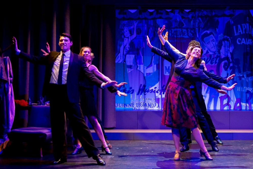 Cette histoire forte, singulière et authentique vous emporte dans un vif tourbillon d’émotions qu’on ne finit pas de vivre: tableau après tableau, on sourit, on rit, on tremble aussi. Touchante et vibrante , cette comédie musicale est menée avec énergie par une talentueuse troupe dont les acteurs-rices–chanteurs-euses-, danseurs-euses- jouent en alternance. Ce soir-là, les deux compères, respectivement producteur et auteur, sont campés avec brio par Stéphane Roux et Etienne Launay -vus dans Je m’appelle Georges, la comédie romantique remarquable et si piquante d’Eric Bu, et dont c’était la dernière parisienne aussi ce soir-là – les deux comédiens y jouaient par ailleurs aussi juste après leur belle prestation-. Quels talents ! Et les autres artistes si complices sur le plateau n’en manquent pas : citons Arnaud Denissel, dans le rôle chanté et joué superbement de Charles Gentes -tout comme Gregory Benchenafi qu’il remplaçait ce soir-là-. Et saluons les prestations des magistrales et touchantes Gaëlle Pauly, Prisca Desmaret, ou celle du truculent et raffiné, Benjy Rouire, sans oublier l’accompagnement pianistique et précieux de Nima Santonja. Une bien jolie troupe là encore qui nous donne envie de rêver !